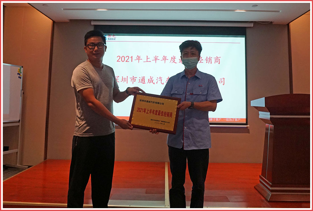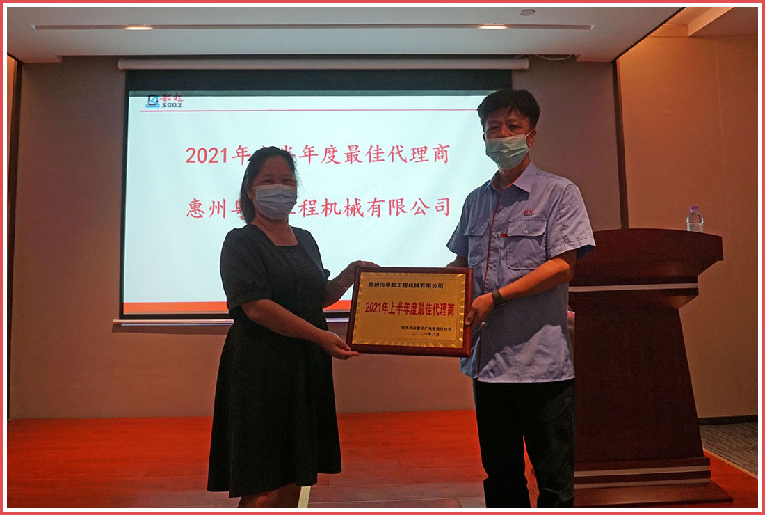 韶起對廣東區域2021年上半年度的成績進行了隆重表彰,董事長李總親自為2021年上半年度最佳經銷商深圳市通成汽車有限公司及2021年上半年度最佳代理商惠州市粵起工程機械有限公司頒發獎項。