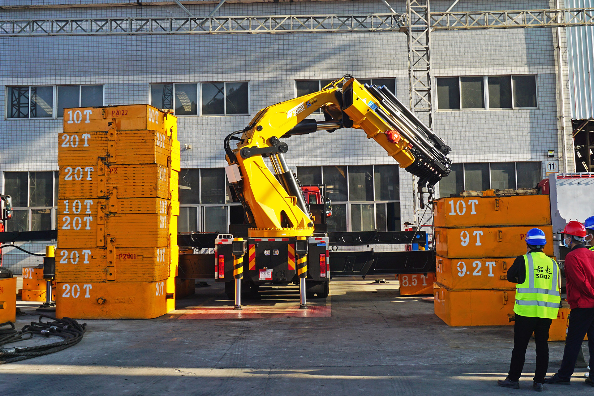 韶起SQ80T除了性能之外,最直接吸引觀眾眼球的莫過于他的大長腿了,獨特的三級液壓伸縮主支腿,全伸跨距達到令人咋舌的10.2米,配合抗彎抗扭能力比友商同級別車型高出50%的整體式車架,側方吊重可達50噸,全方位吊載作業穩定性好,更加安全可靠。