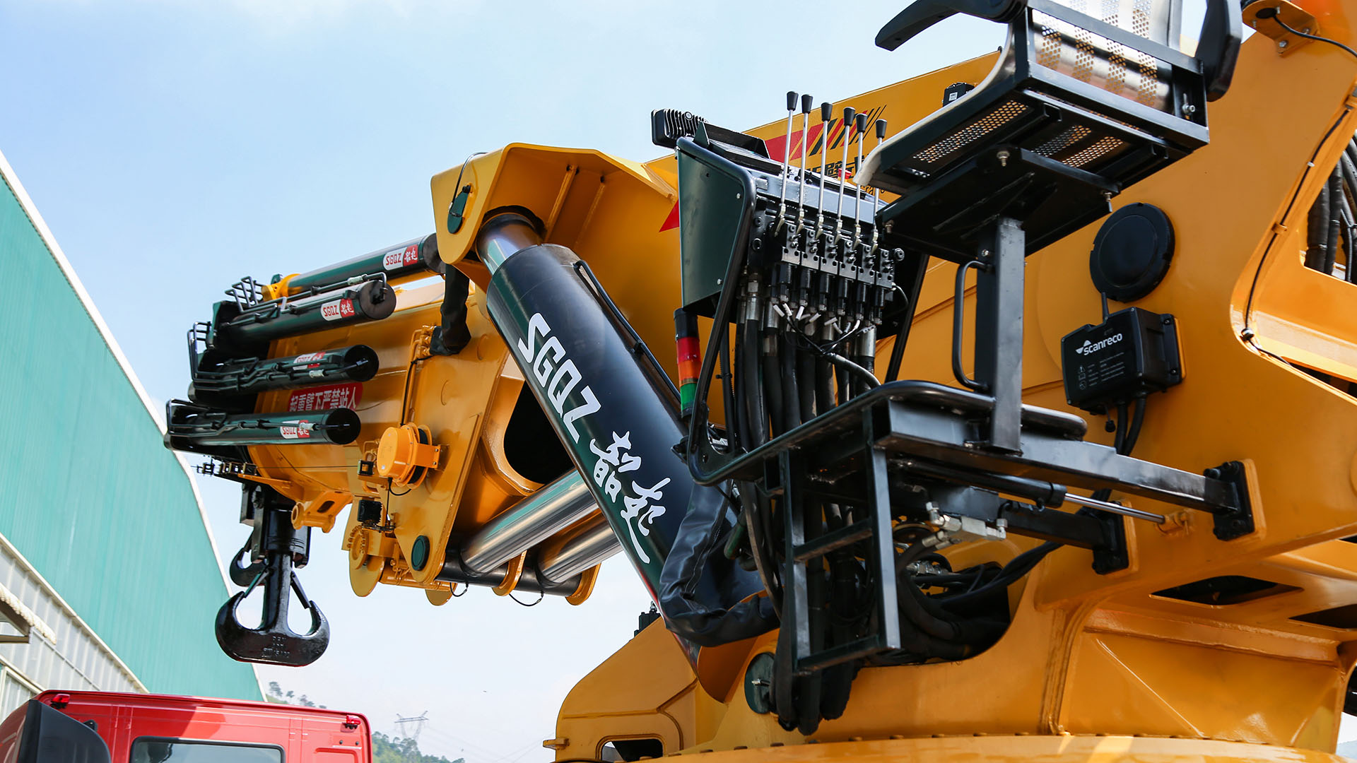 張總向唐山吊至誠魏總介紹了工況需求:大型球磨機約60噸重,長6米、寬2.4米、高3米,球磨機卸車位置到車間門口有一段10多米的小斜坡,需要通過僅3.5米寬的車間門口,移到高度不超過9米的室內廠房,精準定位安裝到混凝土基礎上。在了解工況需求,并視察現場作業環境后,擁有多臺折臂吊、汽車吊、叉車等起重搬運設備的魏總,決定派出他手下一眾干將中最得力的全方位折臂吊韶起SQ200T去完成這一次的高難度吊裝作業。