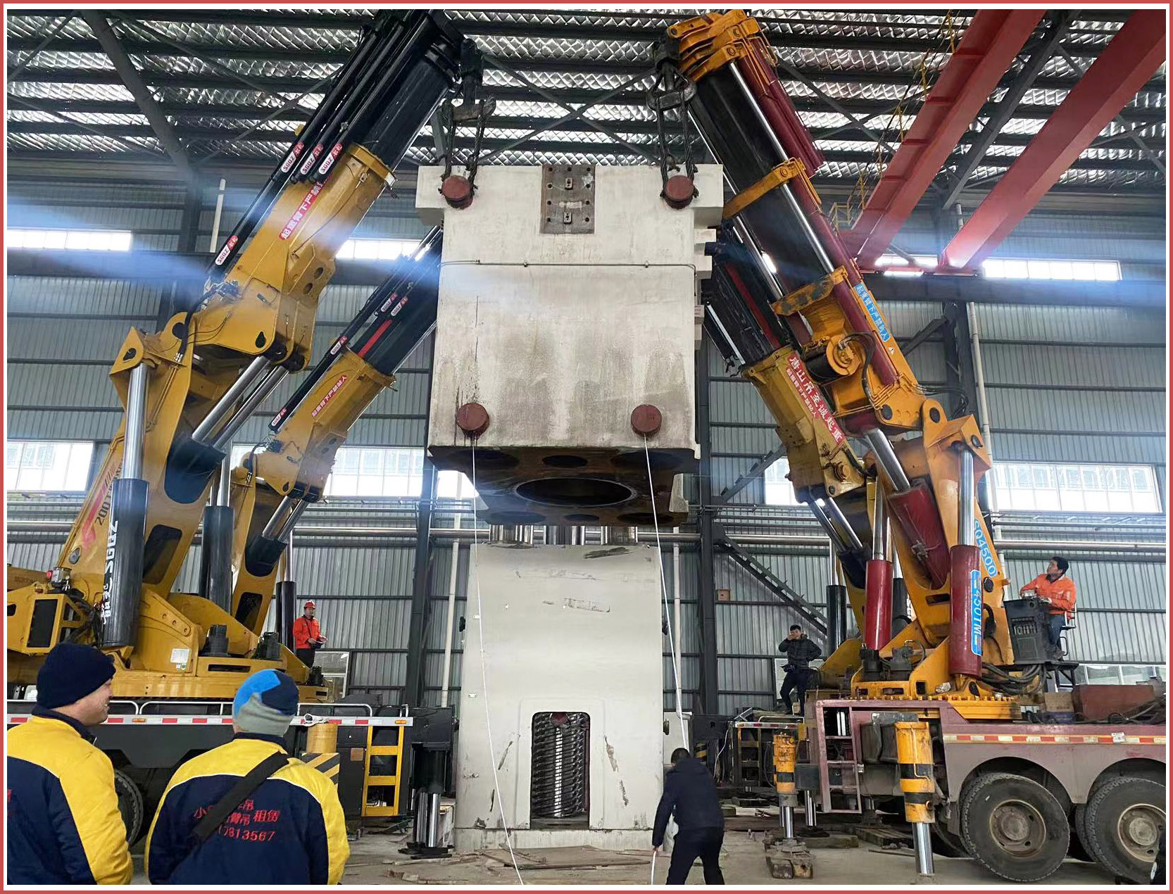 這是在陜西省寶雞市眉縣的一個(gè)大工程,西安新盛機(jī)械設(shè)備安裝有限公司楊總受陜汽漢德車(chē)橋新廠的委托,需要完成一個(gè)8000T電動(dòng)螺旋壓力機(jī)上蓋安裝,此工況難點(diǎn)有3個(gè):